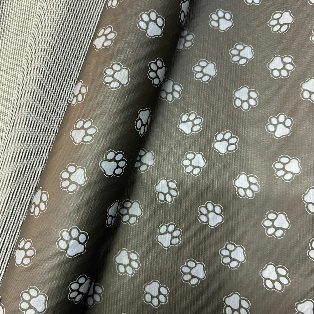 O Bagun Patinha - Preto é um tecido sintético resistente e impermeável, ideal para forros de bolsas, mochilas, capas protetoras, acessórios pet e artigos de artesanato. Sua estampa de patinhas brancas em fundo preto traz um toque divertido e versátil para diversas criações.