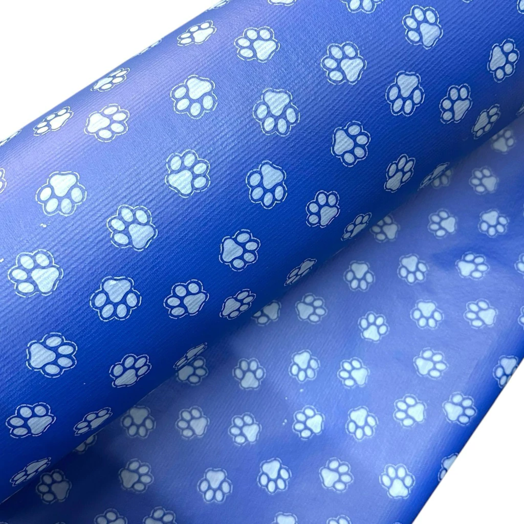 O Bagun Patinha - Royal é um tecido sintético com acabamento impermeável, ideal para confecção de bolsas, forros, capas protetoras, acessórios pet e itens artesanais. Com estampa de patinhas brancas sobre o fundo azul royal, é uma opção charmosa e funcional para projetos criativos.