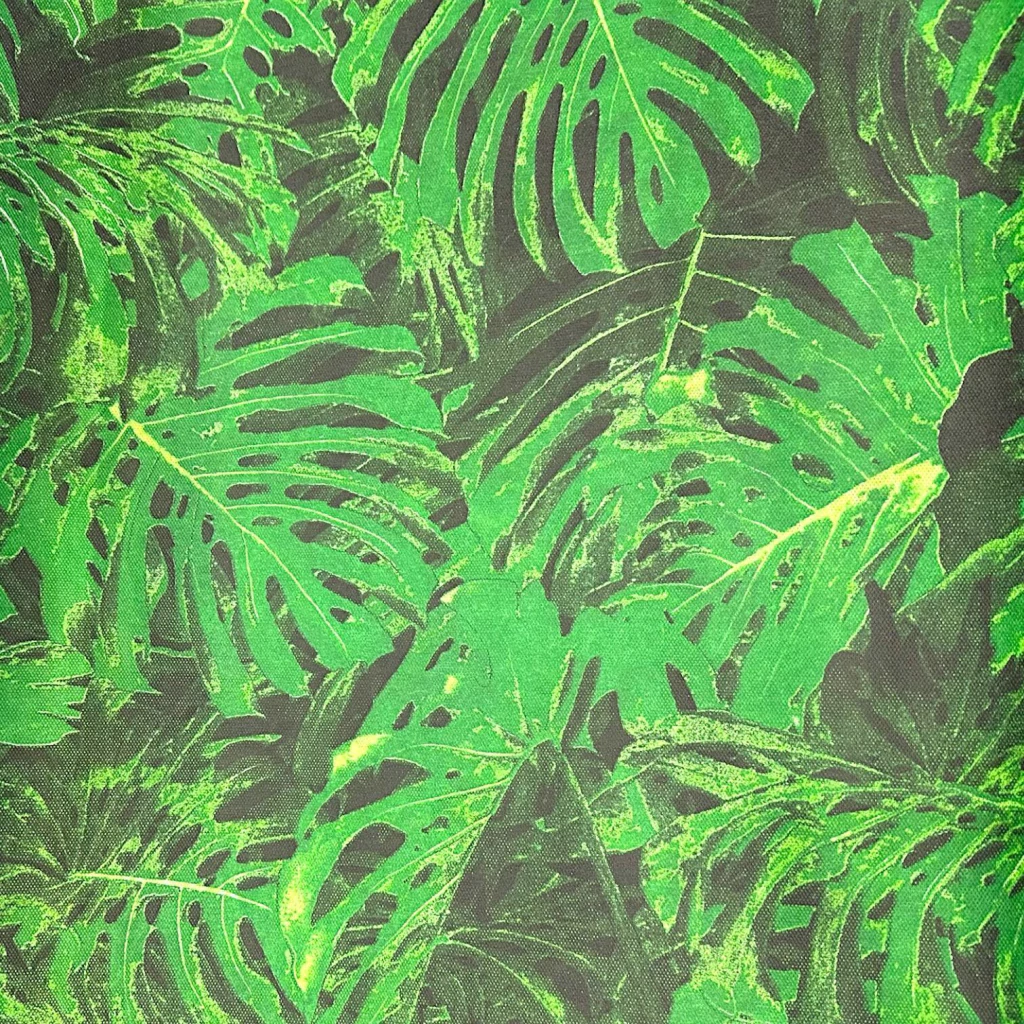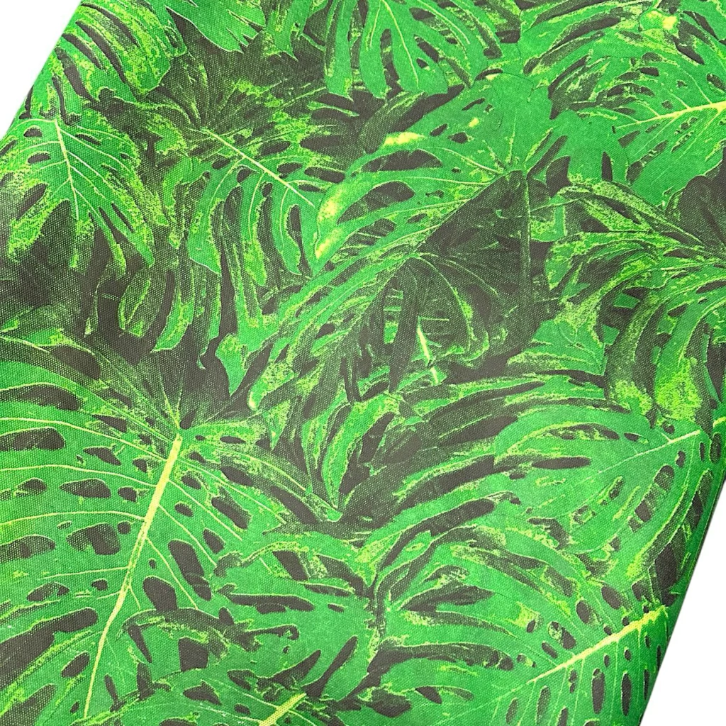 Estampa vibrante de folhas costela de adão.